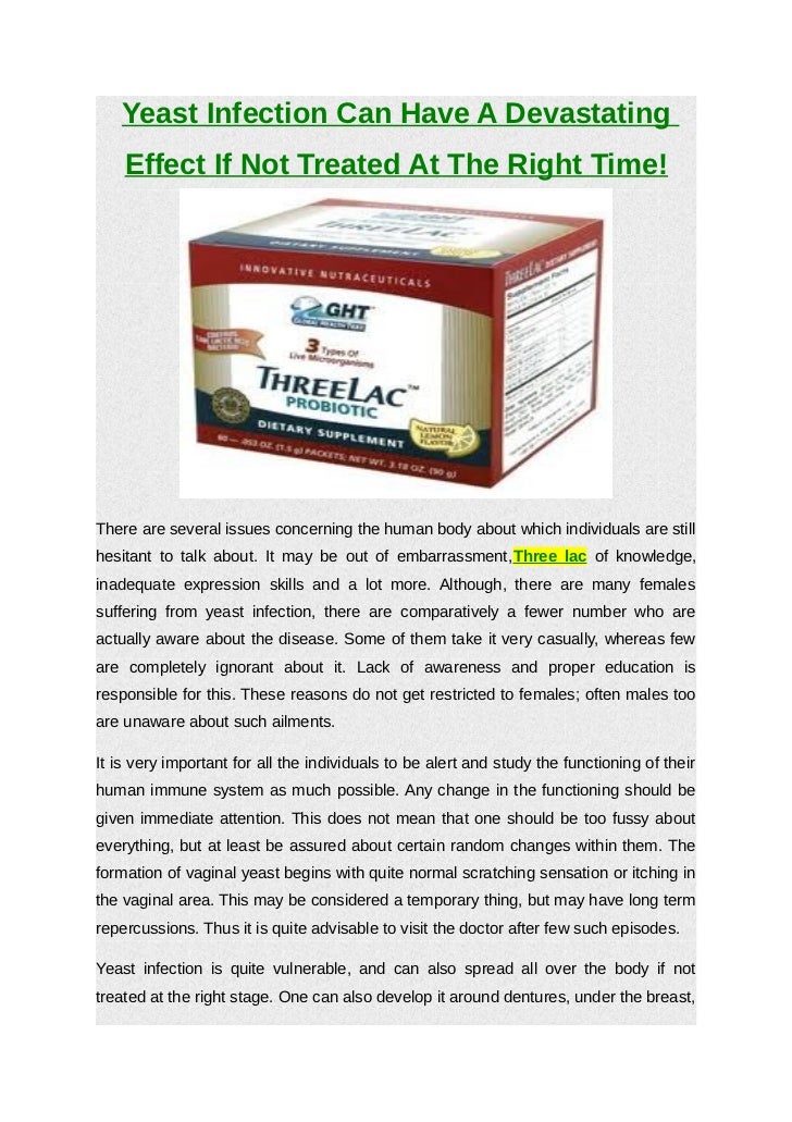 Untreated Yeast Infection: Is It Harmful And What Are The. Candida yeast is also entering your body every day, and. Yeast Infections: Symptoms, Diagnosis, Treatment m Whats more, repeated use of antifungal medicines when you dont have a yeast infection may make yeast resistant to treatment in the future. If you should choose not to treat a yeast infection, the itching sensation will develop into a severely painful condition where it will even be difficult for you to urinate.