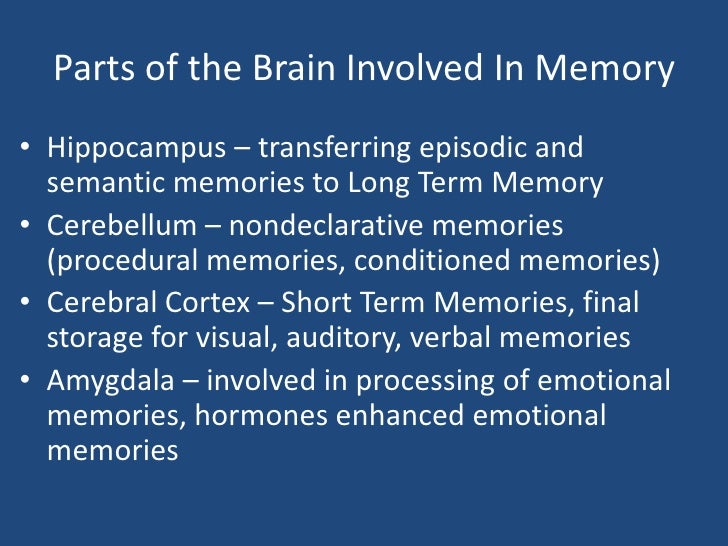 Many scouting web questions are common questions that are typically seen in the classroom, for homework or on quizzes and tests. List of 1causes for Cerebellar ataxia and Short-term memory loss, alternative diagnoses, rare causes, misdiagnoses, patient stories, and much more. Short term memory is similar to your ROM, and is erased after a little while unless you. The main parts of the brain involved with memory are the amygdala, the hippocampus, the cerebellum, and the prefrontal cortex. Neuroanatomy of memory - It is theorized that memories are stored in neural networks in various parts of the brain associated with different types of memory, including short-term memory, sensory memory, and long-term memory.