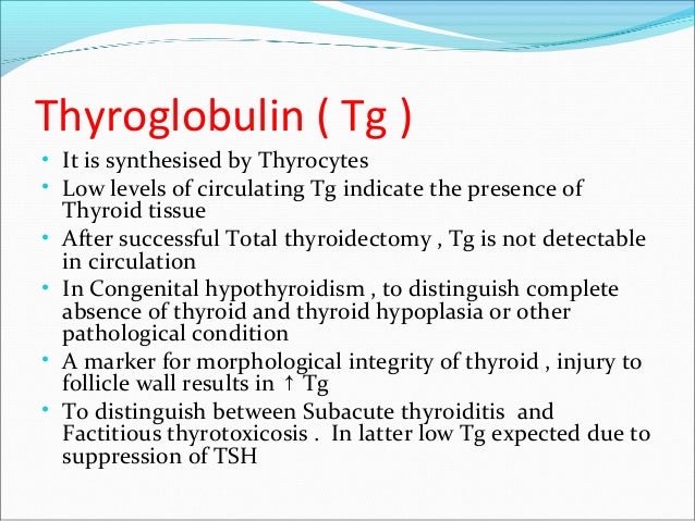 Our purpose was to describe the TgAb resolution time-course and the significance of persistent antibody elevation after thyroidectomy. Doctors give unbiase helpful information on indications, contra-indications, benefits, and complications: Dr. Living as a Thyroid Cancer Survivor Thyroglobulin is made by thyroid tissue, so after total thyroid removal and ablation it should be at very low levels or not be found in your blood at all.