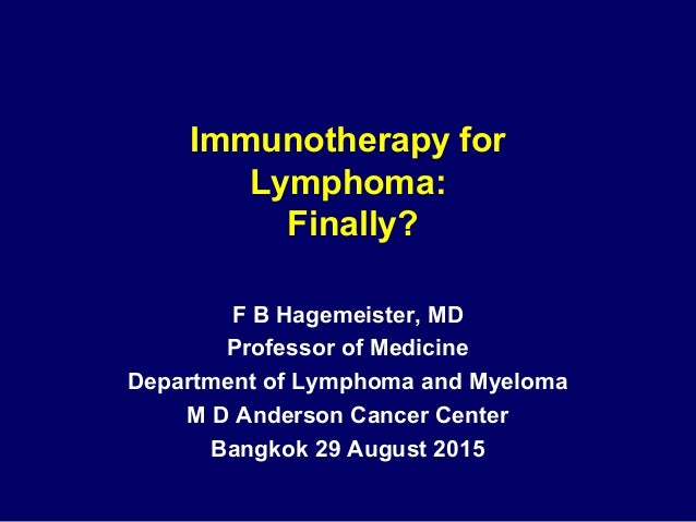 Non-Hodgkinaposs Lymphoma Immunotherapy Types Immunotherapy is one of the newest treatments for cancer, including some kinds of non-Hodgkinaposs lymphoma. Researchers are studying immunotherapy with three general approaches: Immune cells from the patient or a transplant donor are used to attack residual leukemia, lymphoma or myeloma cells that remain after chemotherapy. Immunotherapy in Lymphoma - Lymphoma Research Foundation Lymphoma is characterized by the uncontrolled growth of abnormal immune system cells (T cells or B cells which travel through the body.