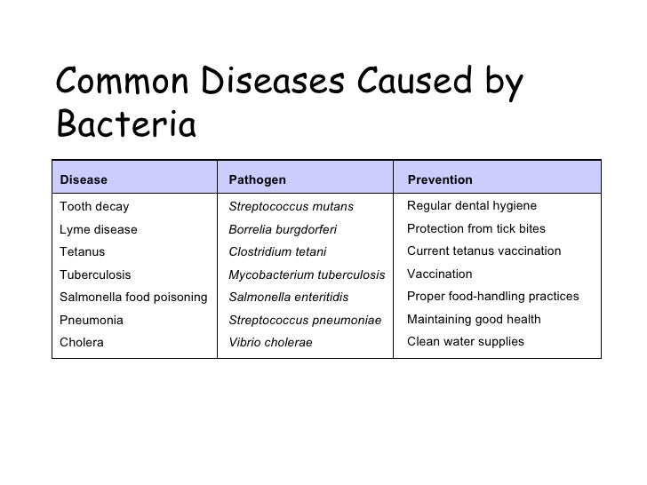Infectious diseases - Symptoms and causes - Mayo Clinic List of diseases caused by bacteria in humans are 1. Jul 2 20common diseases that are caused by Bacteria. Here is one of the most common health issue that is caused by bacterium known. Infection of the stomach with the bacterium Heliobacter pylori is a well-known cause of peptic ulcer disease and may increase the risk for stomach cancer.