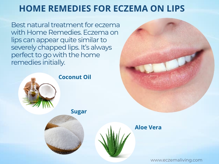 Eczema can cause dryness and cracks on the lips and the area around the mouth. Meditation, yoga, and learning calming breathing techniques can help you. Eczema on the lips: Types, triggers, causes, and treatment Jan 1 20Treatment options for eczema on the lips may include the following medications and home remedies: medicated creams, including corticosteroids regular moisturizing. Using a larger grain sugar, like brown sugar or cane sugar is always a good idea.