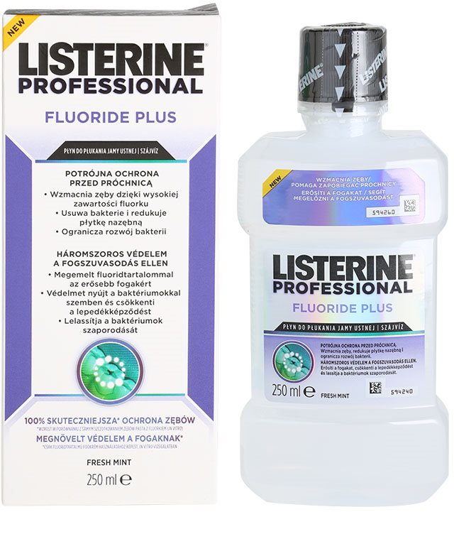 Enjoy the 2-in-power of LISTERINE that gives you a brighter smile while seamlessly fitting into your morning oral care. Listerine Professional Fluoride Plus Suuvesi LISTERINE Toisin kuin monet muut suuvedet, LISTERINE Professional Fluoride Plus toimii kaikkia karieksen aiheuttajia vastaan.