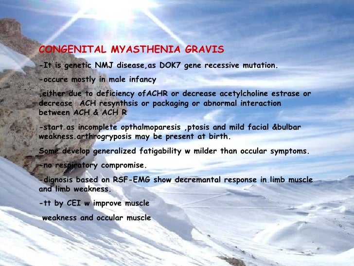 Normal muscles: No change in CMAP amplitude with repetitive nerve stimulation Myasthenia gravis Progressive decline in CMAP amplitudes with the first to stimuli Caused by failure of increasing number of NMJs Positive RNS test. Pevzner A(Schoser B, Peters K, Cosma NC, Karakatsani A, Schalke B, Melms A, Kr ger S. A mild prodrome of fever and malaise may occur to days before rash onset, particularly in adults. Adults should take tablets or capsules whole with a glass of water.